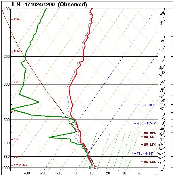(below is the morning sounding from the balloon launch in Wilmington, which is the closest sounding to Central/Southern Ohio)