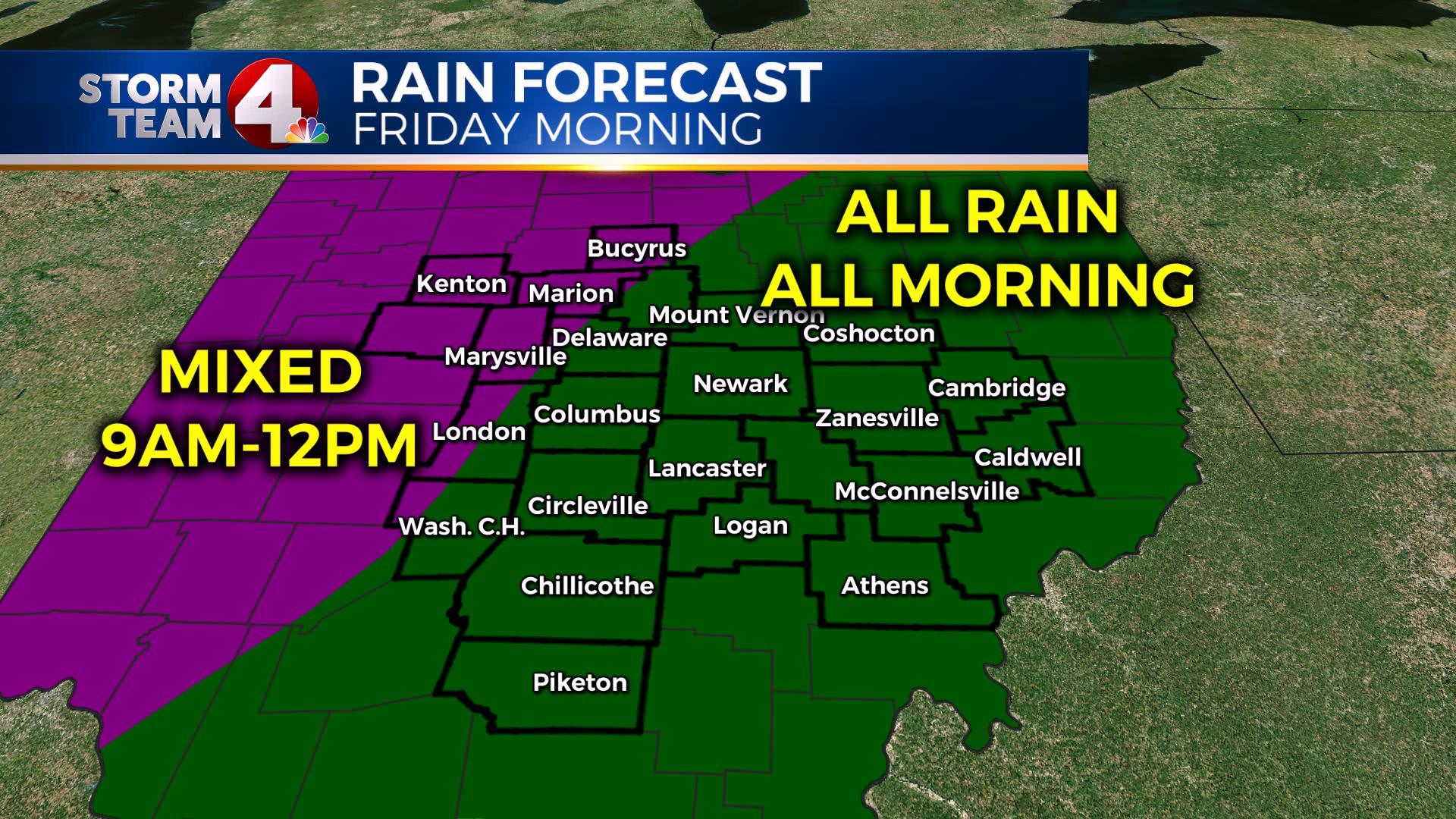 This means morning precipitation that falls in our area, will fall as rain early, including for the morning commute. As that morning commute thins out by mid-morning, we will see a mix initiating to the west and northwest.