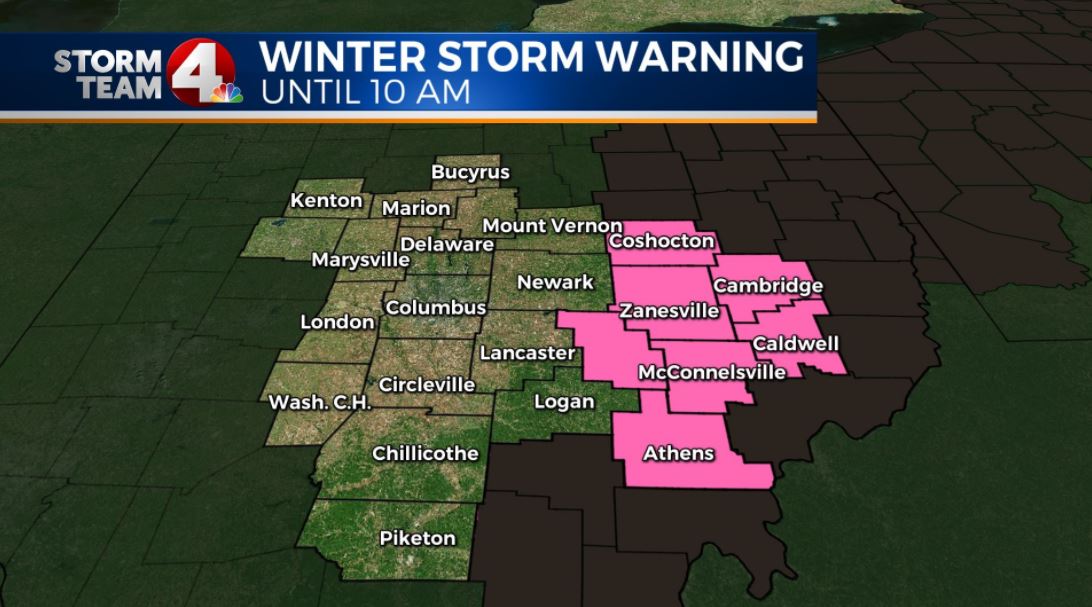We still have a Winter Weather Advisory for Central Ohio and a Winter Storm Warning for areas to our southeast until mid-morning.