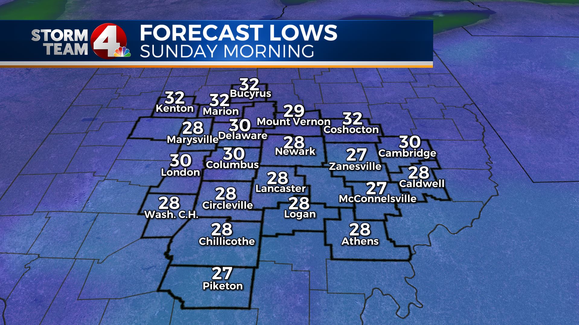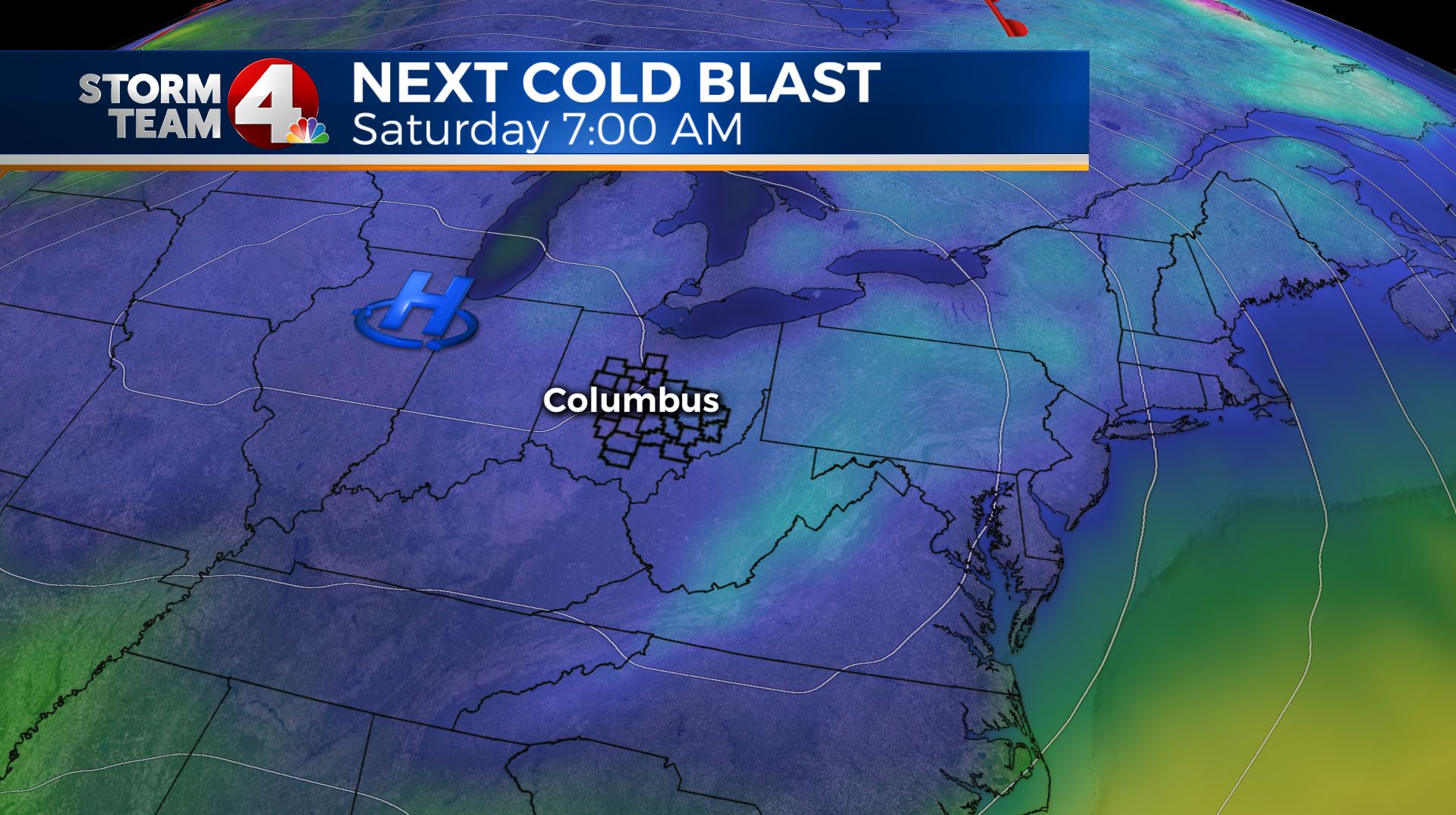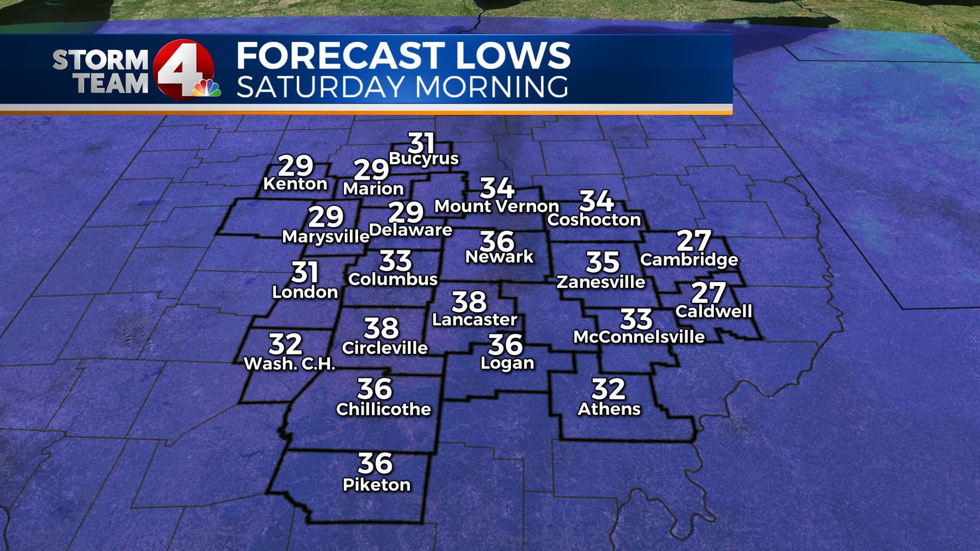 Saturday morning will have several spots that will fall below freezing, but here in Columbus we will stay just above.As the cold front pushes more to the east, and the core of that cold air pushing east late Saturday: