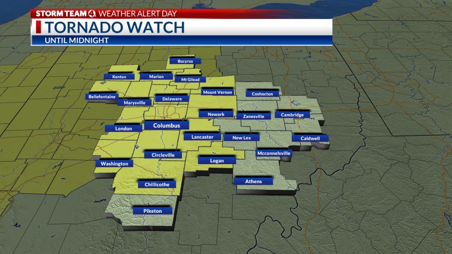 COLUMBUS, Ohio (WCMH) — Tornado warnings and watches were issued for multiple central Ohio counties on Thursday evening. All tornado warnings and watches have expired.