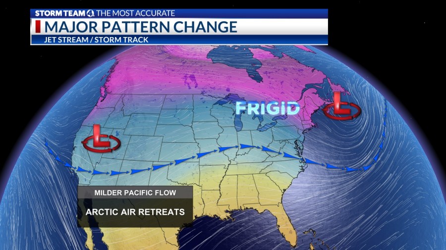 The pattern change coincided with a piece of the polar vortex descending on the northwestern part of the country around Jan. 10, with successive storms following extending the leading edge of arctic air to produce wide swaths of moderate to heavy snow from the interior Pacific Northwest to the Mid-Atlantic Coast.