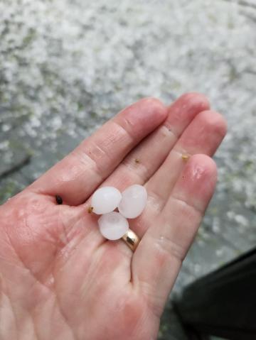 Photos and videos captured from Hilliard to Gahanna showed hail falling around 5:30 p.m. in the Columbus metropolitan area. At the NBC4 studios, hail appeared to be the size of ping pong balls. When it progressed to the Gahanna area, the balls of ice appeared closer to the size of pennies.