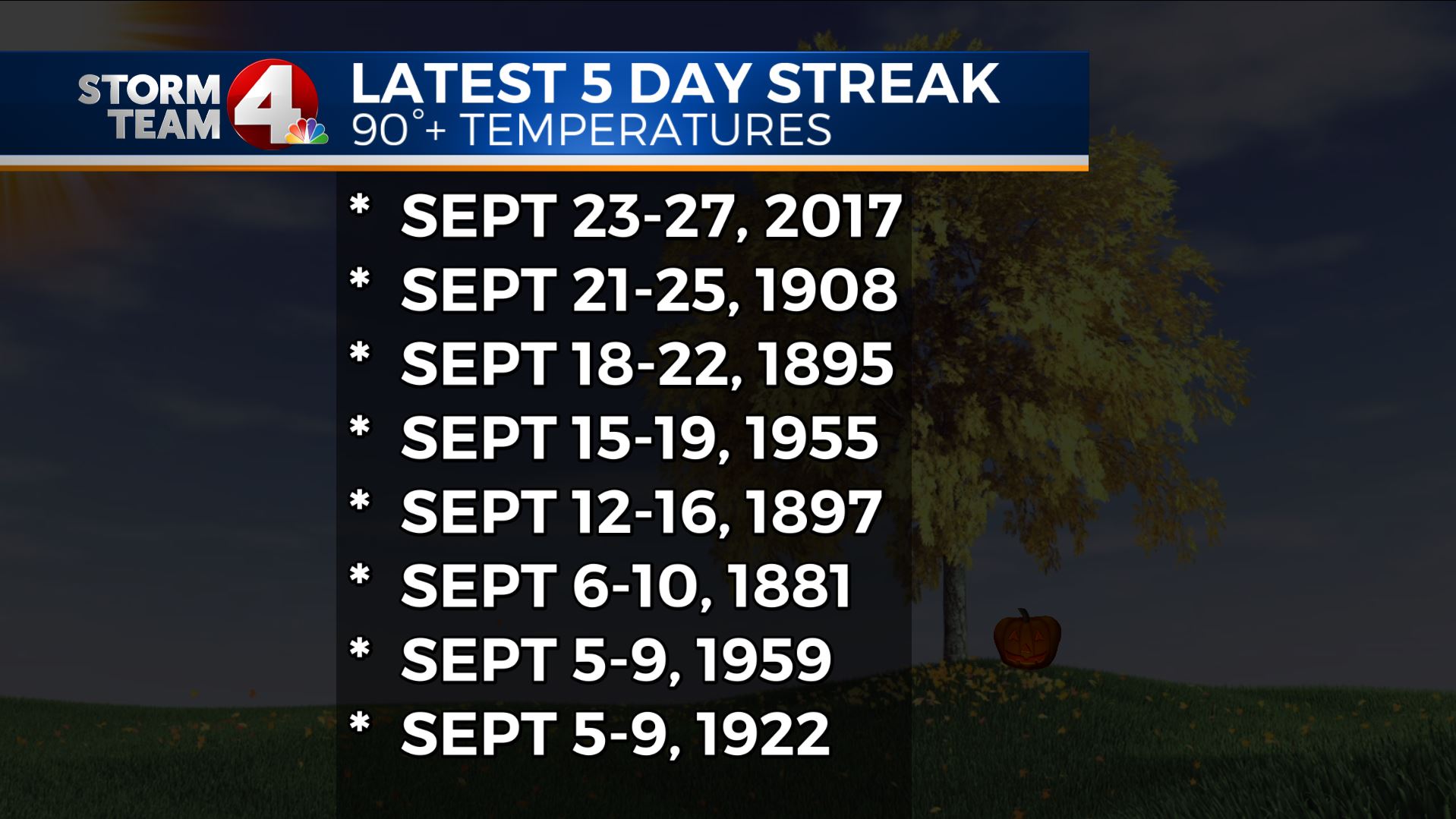 This also is the 5th longest 90 degree heat streak in the month of September on record:
