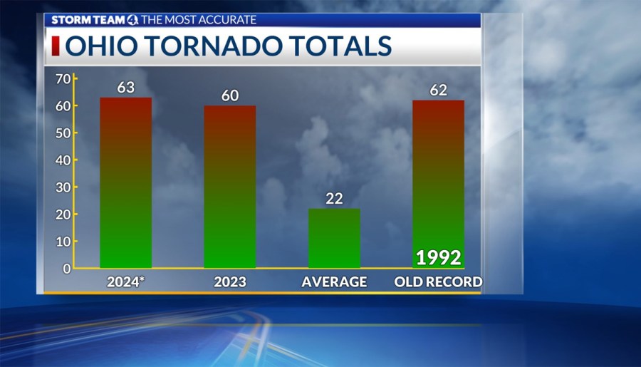 COLUMBUS, Ohio (WCMH) – Just six months into 2024, a tornado record has been set for Ohio.
