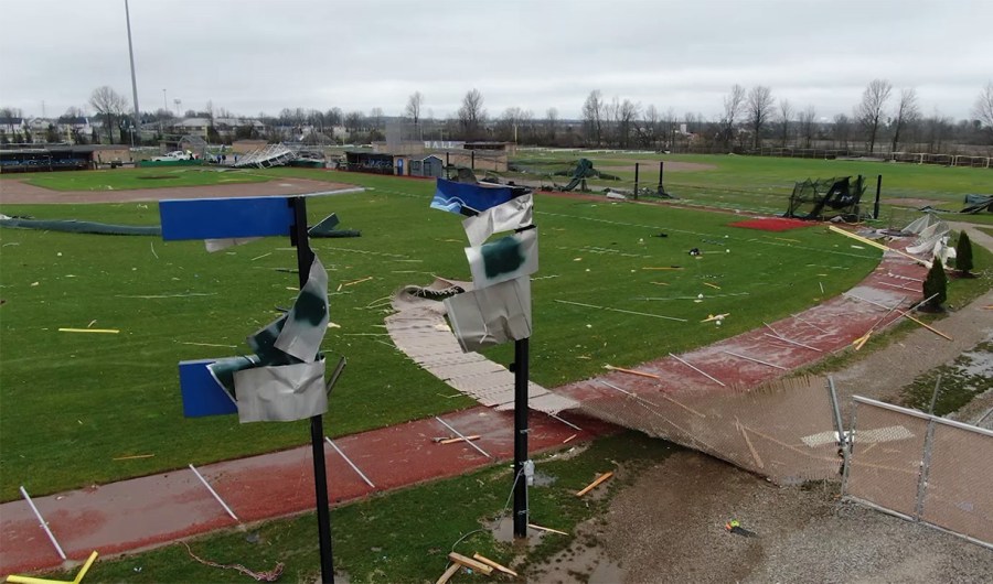 Other tornadoes associated with those storms included those in two in Mercer County, and one each in Licking, Delaware, Crawford, Richland and Hancock counties. Delaware County’s twister damaged parts of the Olentangy Berlin athletic facility, in particular the baseball field, which lost its scoreboard. It also caused extensive damage to nearby homes and businesses along Berlin Station Road.