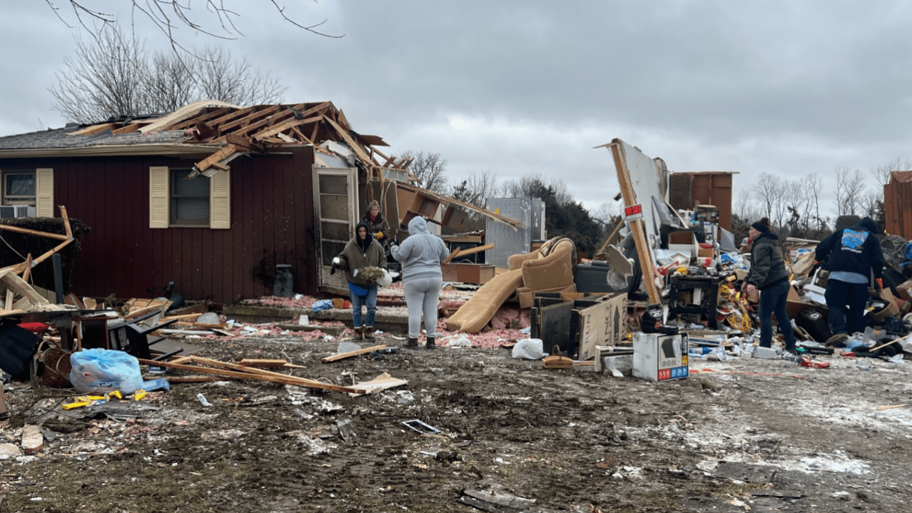 Delaware County residents experienced extensive damage to their homes and property in the aftermath of violent storms, March 15, 2024. (NBC4/Mark Feuerborn)