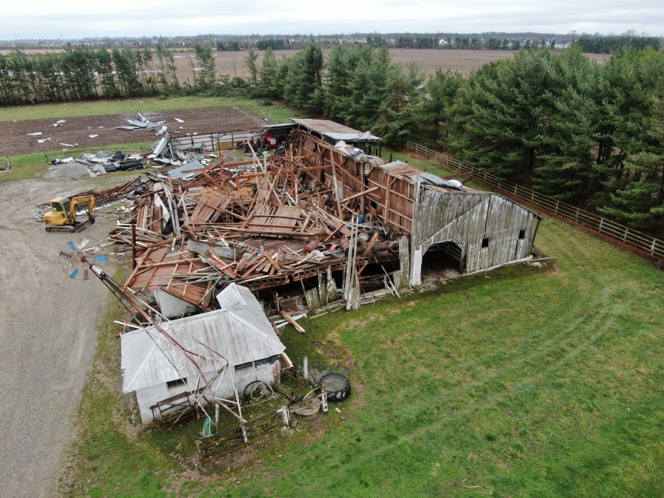 A barn collapsed during the March 14, 2024 storms in Delaware County. (NBC4 Photo/Mark Feuerborn)