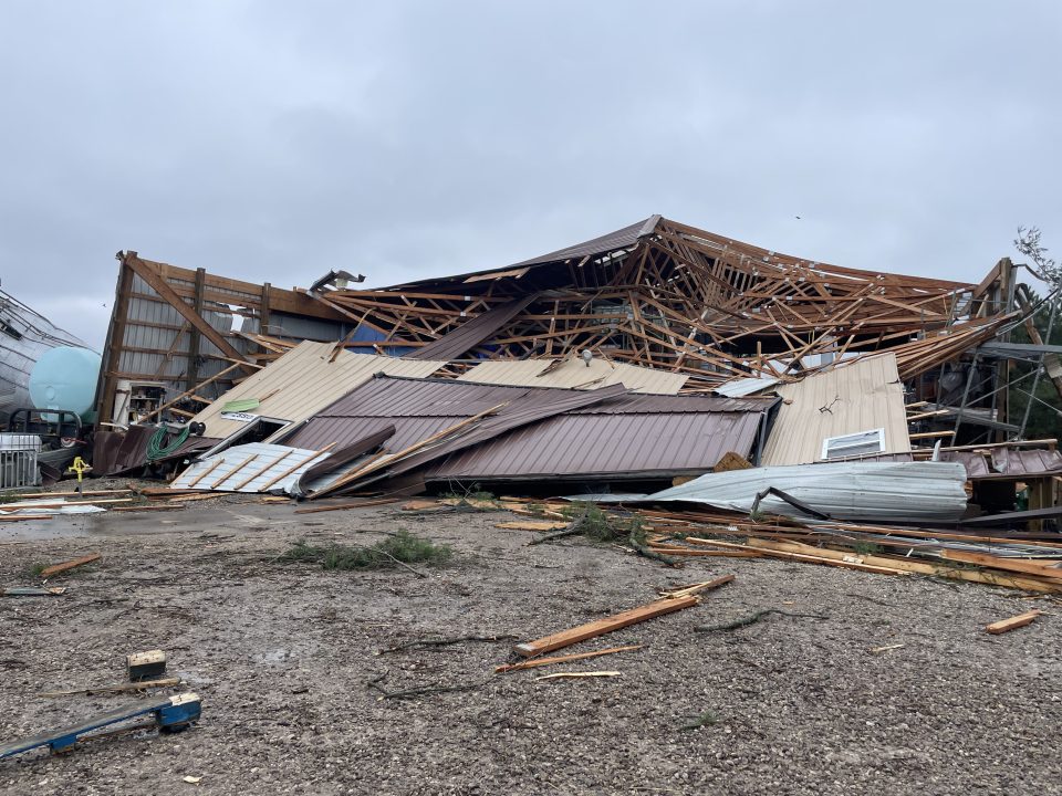 A tornado leaves debris behind at the Madison County Airport, Feb. 28, 2024. (Courtesy/Ohio State Highway Patrol)
