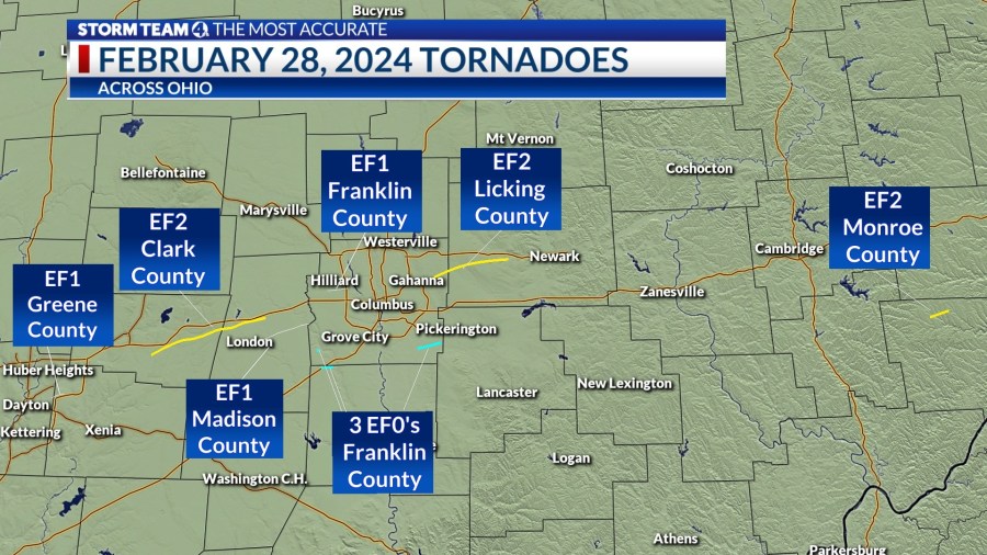 COLUMBUS, Ohio (WCMH) — Many residents in the Columbus area were rudely awakened by the unsettling sound of tornado sirens blaring in the predawn hours of Feb. 28, 2024. Incredibly, for the second year in a row, multiple tornadoes touched down in central Ohio in late February.