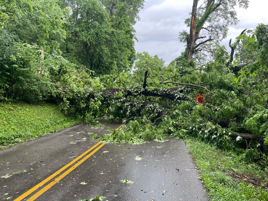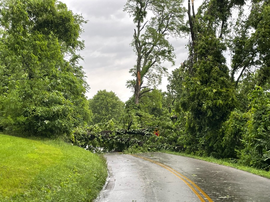 The Hocking County Emergency Management Agency reported as of 8:05 p.m. that there were some trees down on SR-56 about 10 miles south of Logan, but reported no funnel clouds or tornadoes. Also, a portion of SR-664 north of Logan in Hocking County is closed due to downed trees.