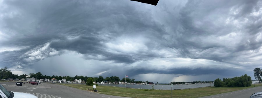 Central Ohio residents saw shelf clouds across the region. These unique clouds are in the category of arcus clouds, which are low, horizontal formations that are frequently seen along the leading edge of a thunderstorm gust front.