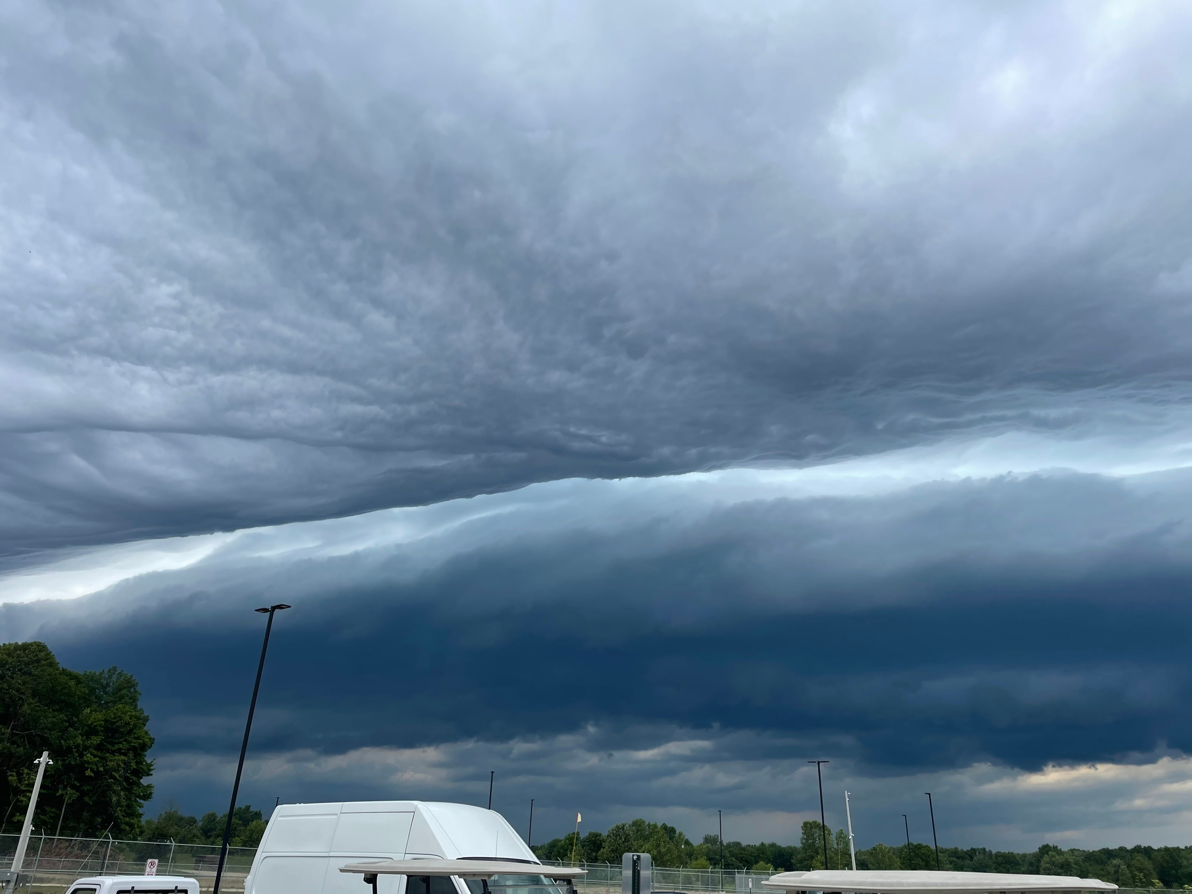 Central Ohio residents saw shelf clouds across the region. These unique clouds are in the category of arcus clouds, which are low, horizontal formations that are frequently seen along the leading edge of a thunderstorm gust front.