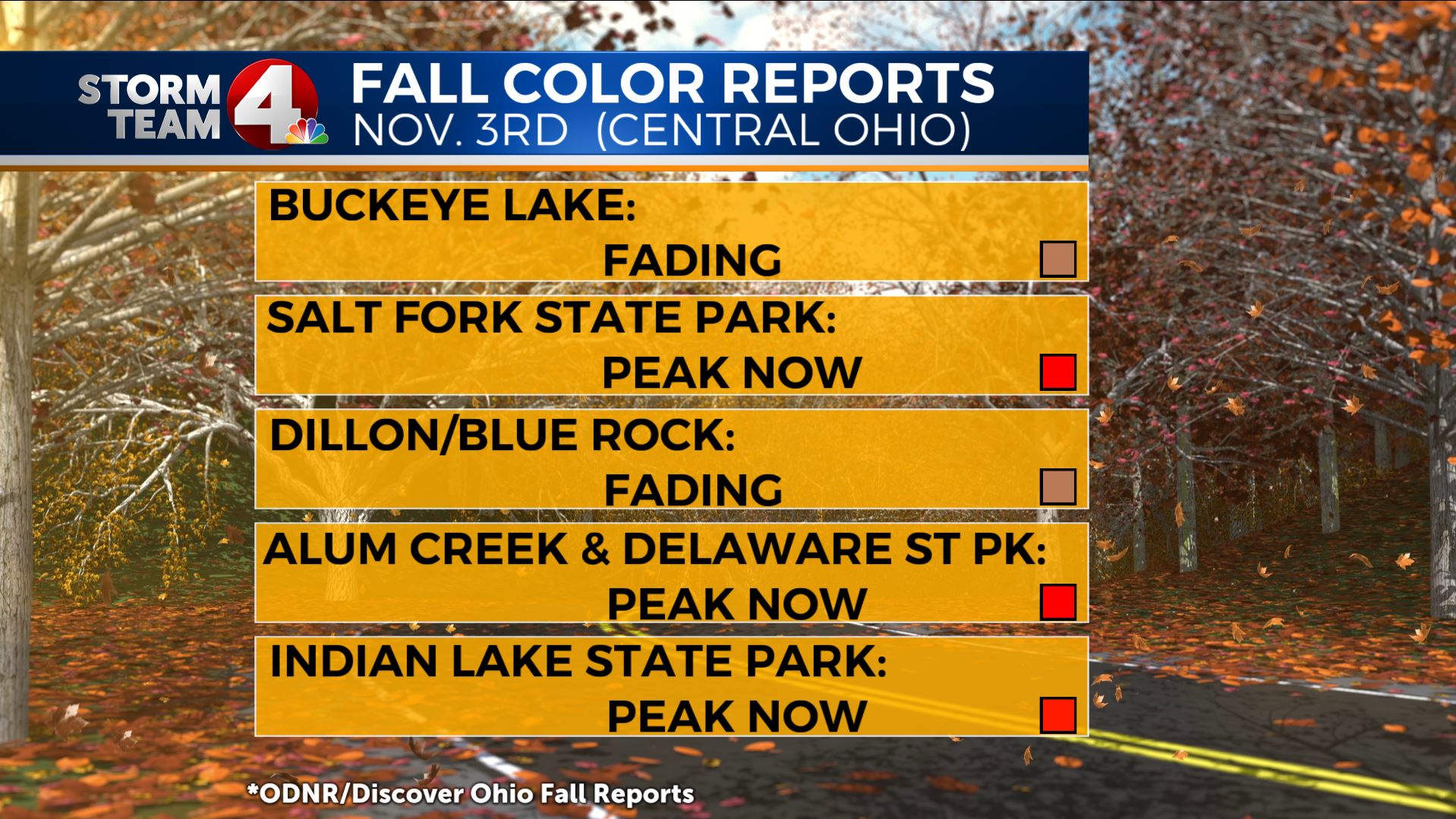 Columbus (WCMH) – We are into the start of November and we are still talking about leaf peepin opportunities.   But they are going to be gone very very soon.To the north, there are still chances to see the leaves: