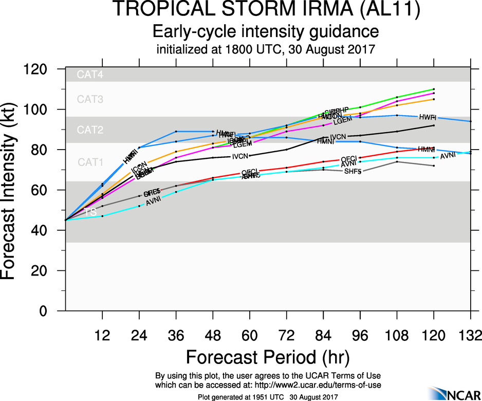 Notice the model consensus is a Hurricane Irma by Friday, and possibly becoming a major hurricane by the weekend.