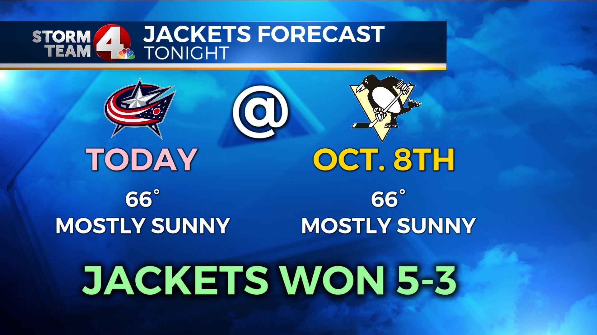 Since it is a playoff game, and not a preseason game, Mother Nature would hint at a Jackets Win, but I think it will be closer… Jackets 3-2