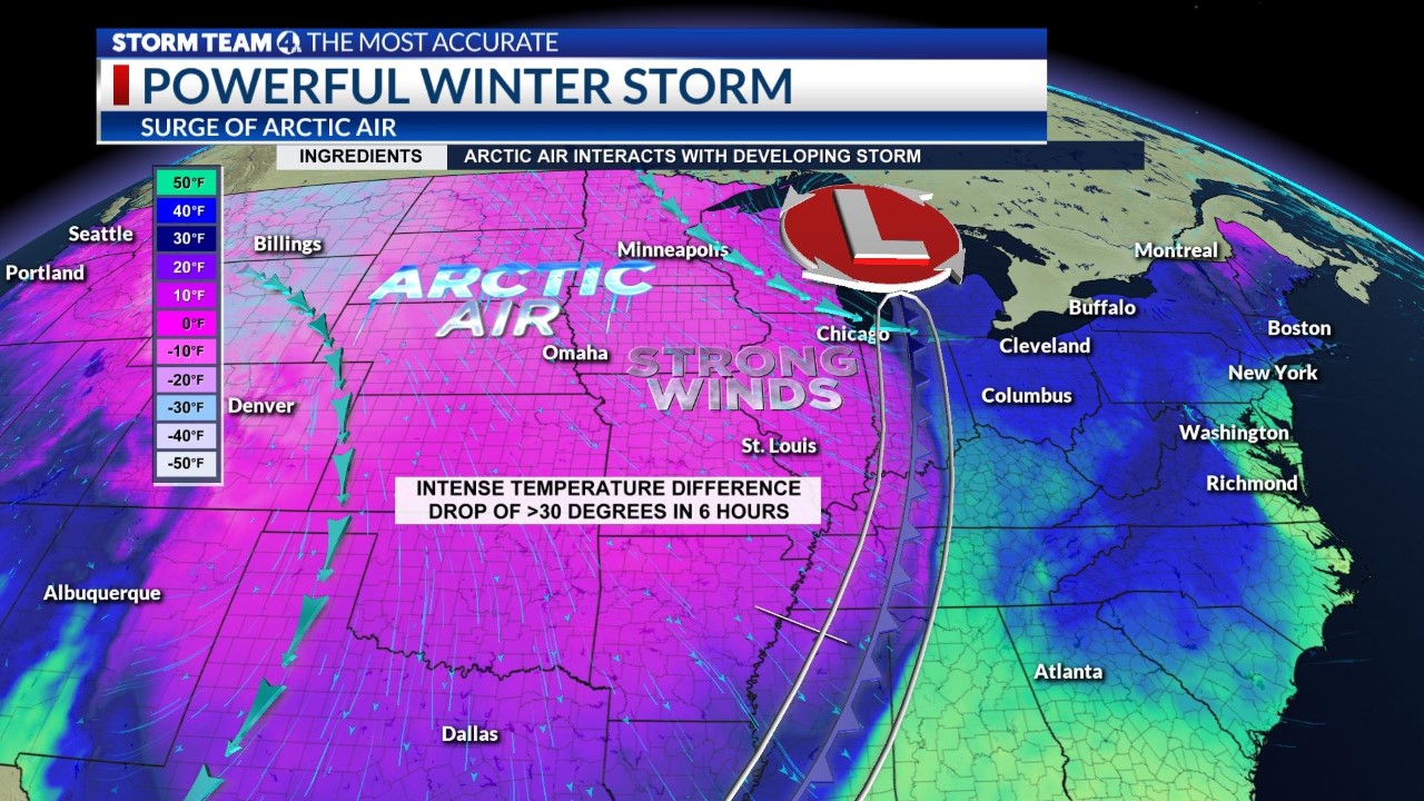 Temperatures will plummet to the single digits and near zero, accompanied by dangerous wind chills of -15 to -25 degrees. Wind gusts will range as high as 40-50 mph.