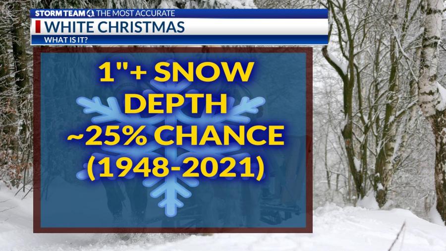 The historic probability of seeing at least an inch of snow on the ground Christmas morning in central Ohio is only about 25%, or 1 in 4 winters, based on NOAA data in the past half-century.